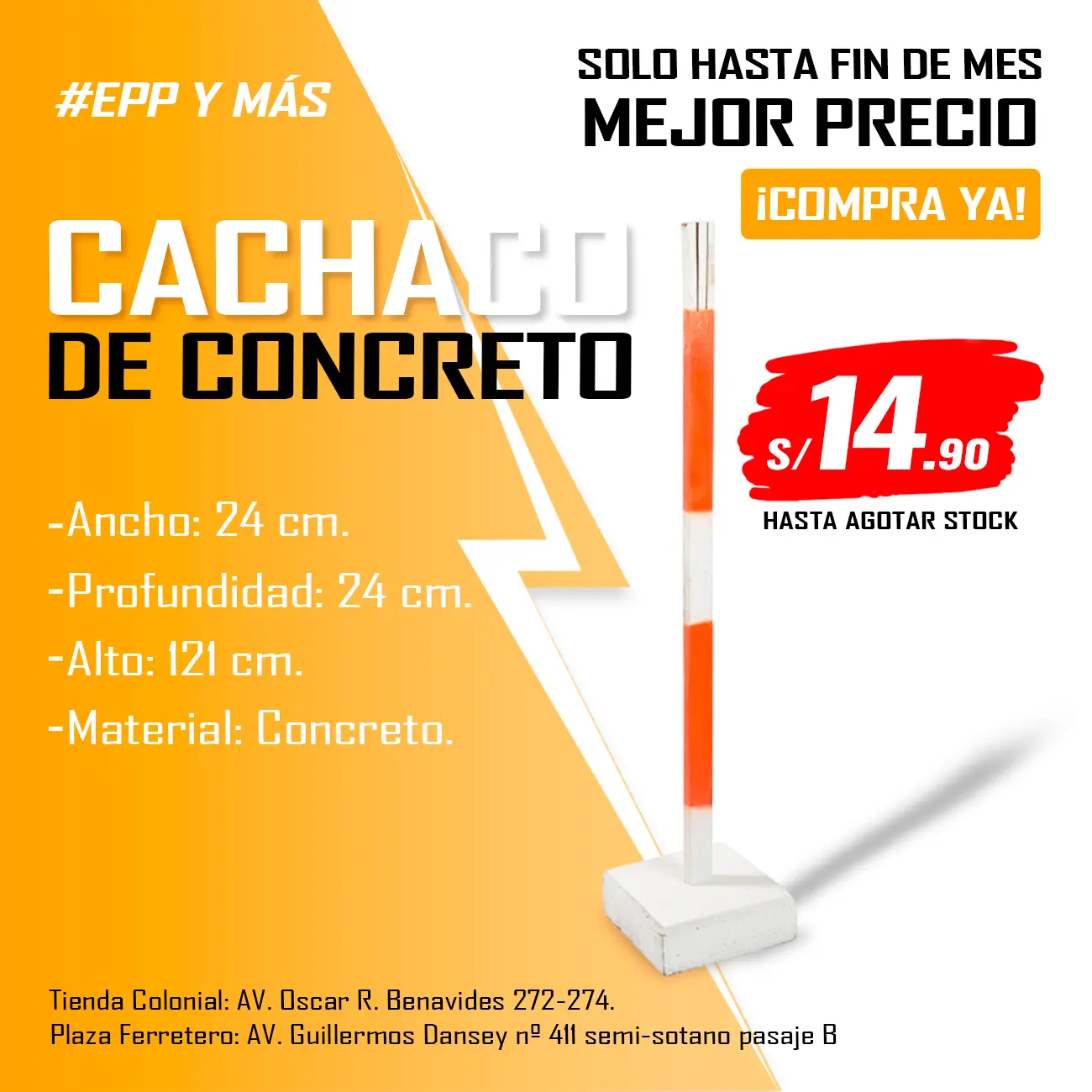 - Características: Parante de madera con base de concreto que brinda seguridad.