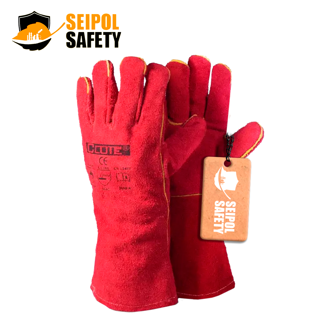 Guante de soldador fabricado en 100% cuero descarne rojo con forro de 1.0 mm – 1.2 mm.